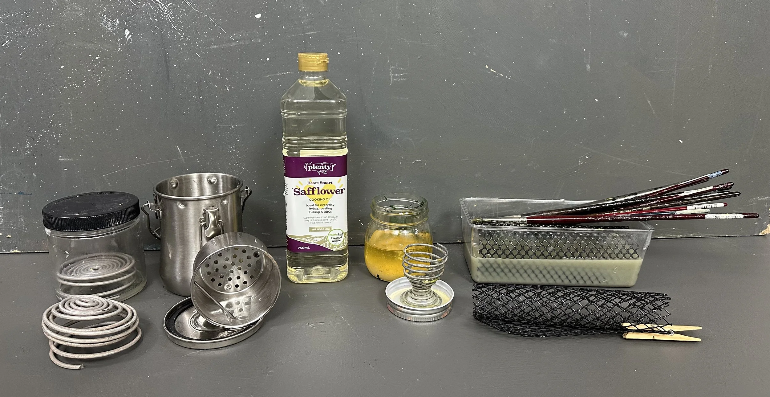 You can buy a scrubbing coil online or repurpose something from home, like an egg holder or some gutter guard. Some of my students use an old Feta cheese container with its built-in strainer!