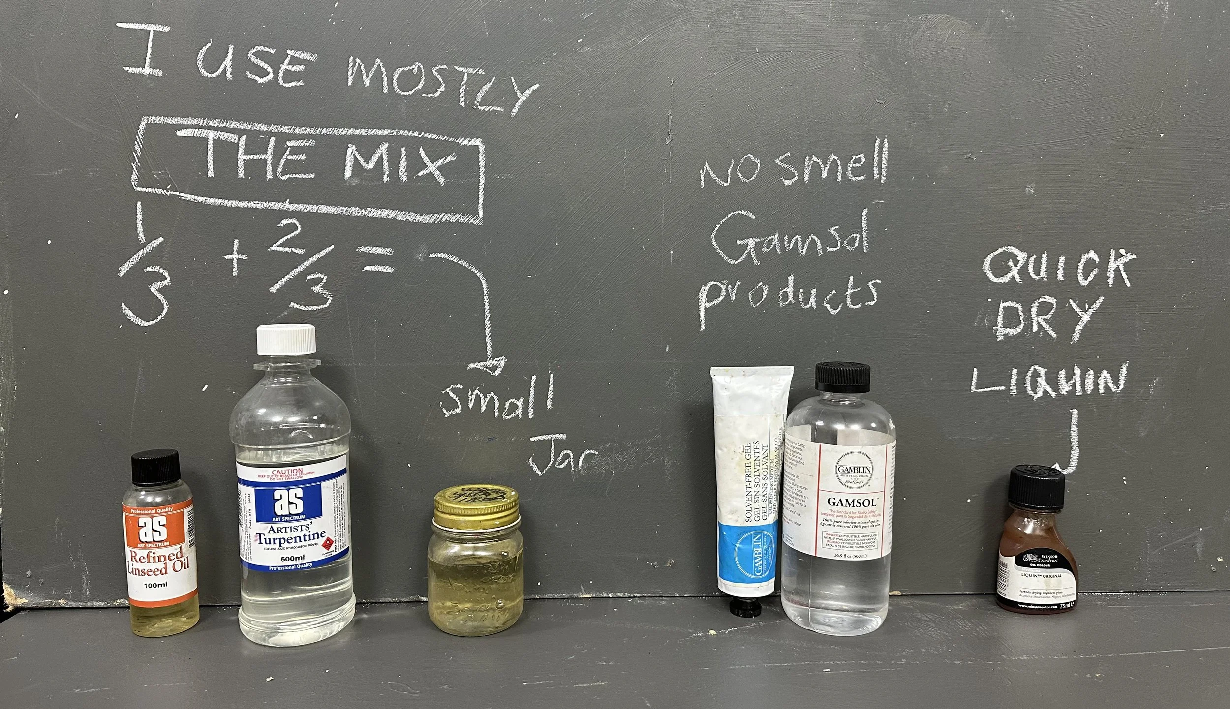 If you’re working in oils, you’ll need solvents to thin out paint or to glaze with.