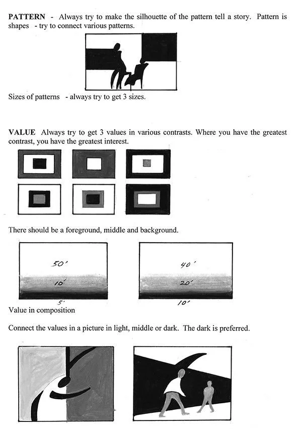Above are examples of where I used the Notan pattern to see what I need to push or pull in a painting, and below are examples of students who use the Notan pattern to figure out what to correct in their work.